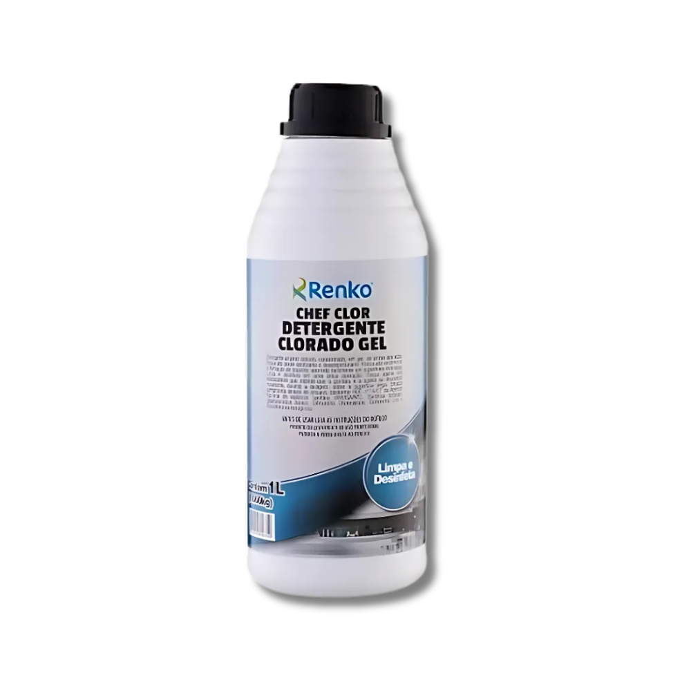 Detergente alcalino clorado da renko, em gel, de ampla aplicação, com alto poder sanitizante e desengordurante. Possui excelente rendimento e formação de espuma aderindo facilmente em superfícies inclinadas limpando, desengordurando e desinfetando em uma única operação: Produto 3 em 1.